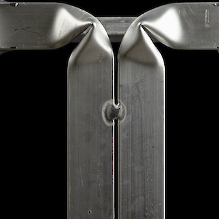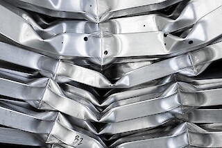 Ein enger Zeitrahmen und die Einschränkung, gebrauchte Aluminiumprofile verwenden zu müssen, ermöglichten uns letztlich einen neuen Ansatz im Umgang mit Material. Es war eine interessante Herausforderung, denn die Gestaltung mit Abfallstoffen bietet die Möglichkeit eines besonderen, individuellen Ausdrucks. Wir fragten uns oft, inwiefern Gebrauchsspuren kaschiert werden sollten oder ob wir eine Formsprache finden können, die sie gut zu integrieren vermag. Das Ergebnis ist ein Objekt mit starkem Charakter, das mit neuem Aluminium niemals auf die gleiche Weise hätte realisiert werden können.
